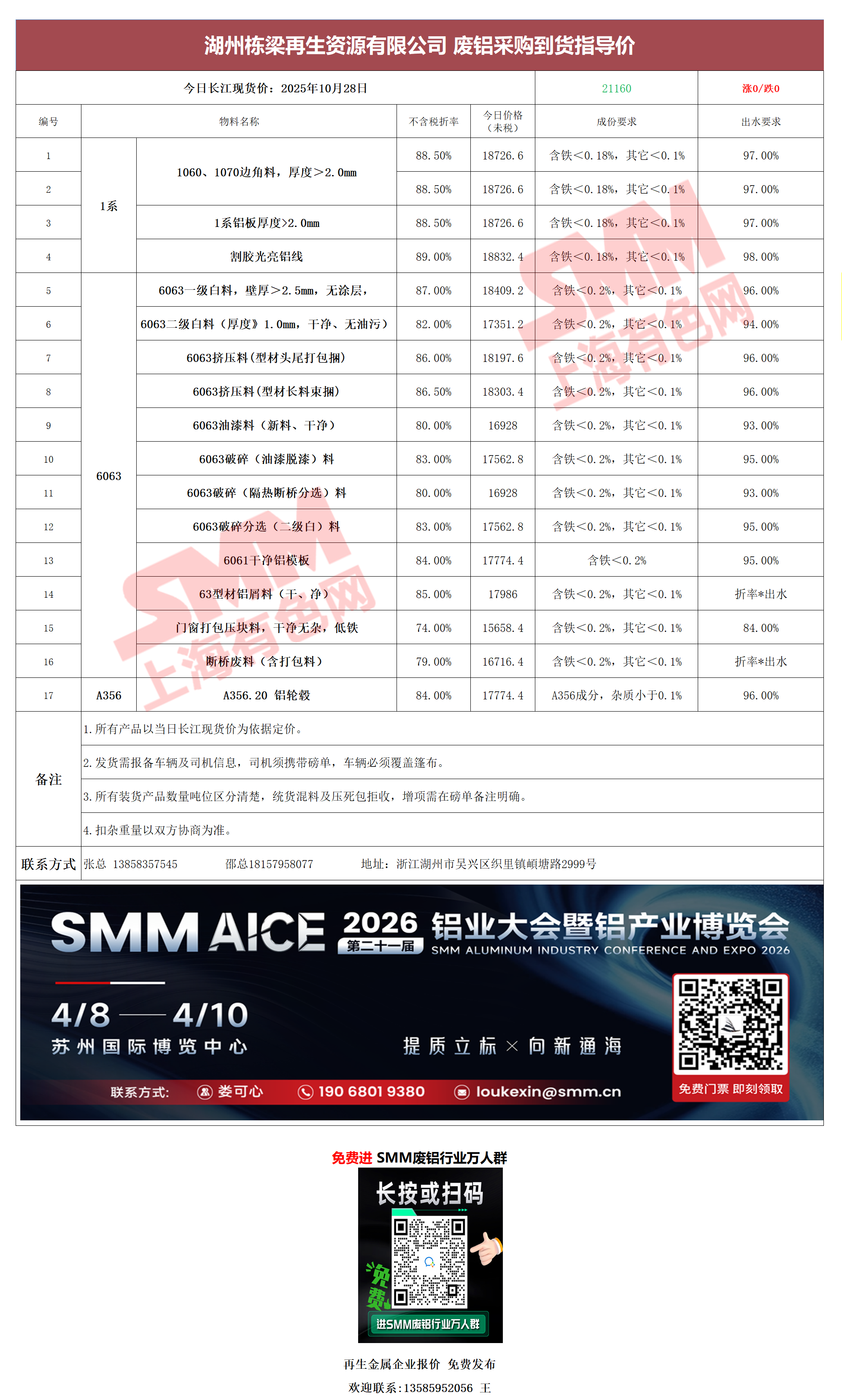 今日湖州栋梁再生 废铝采购报价已更新,有货的朋友欢迎联系我们!