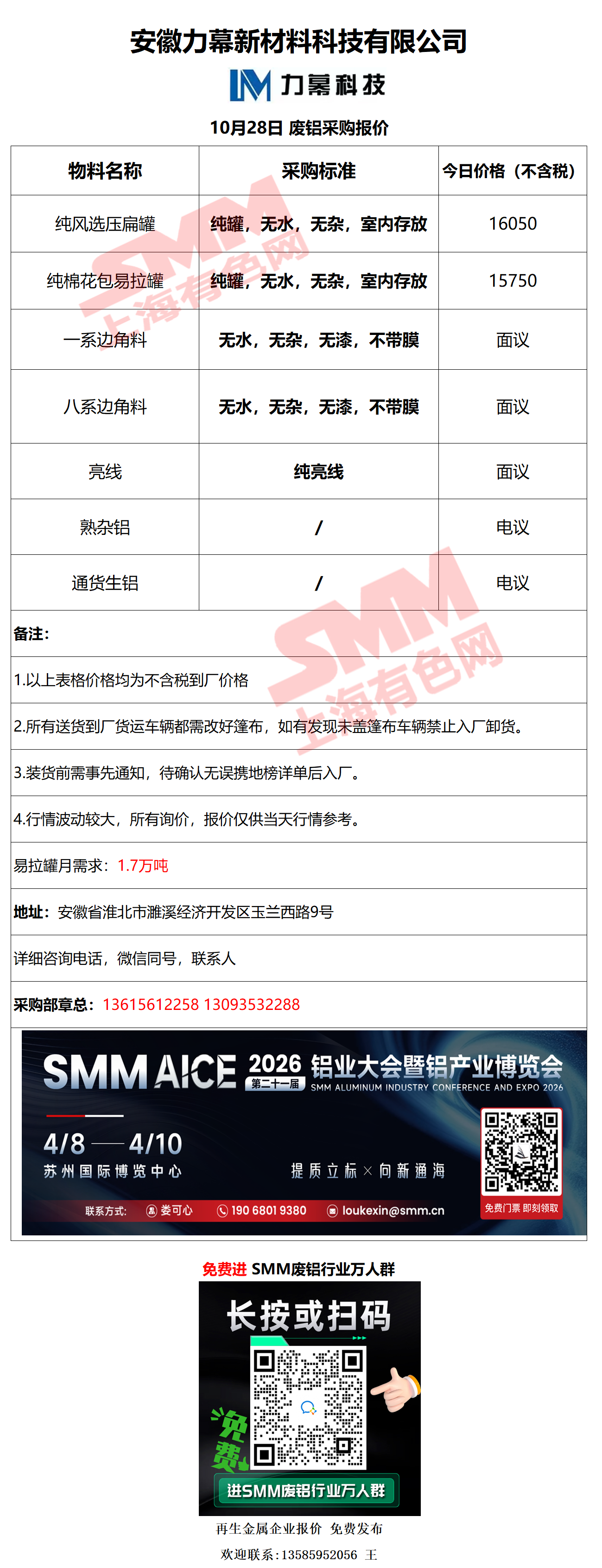 今日安徽力幕 废铝采购报价已更新,有货的朋友欢迎联系我们!