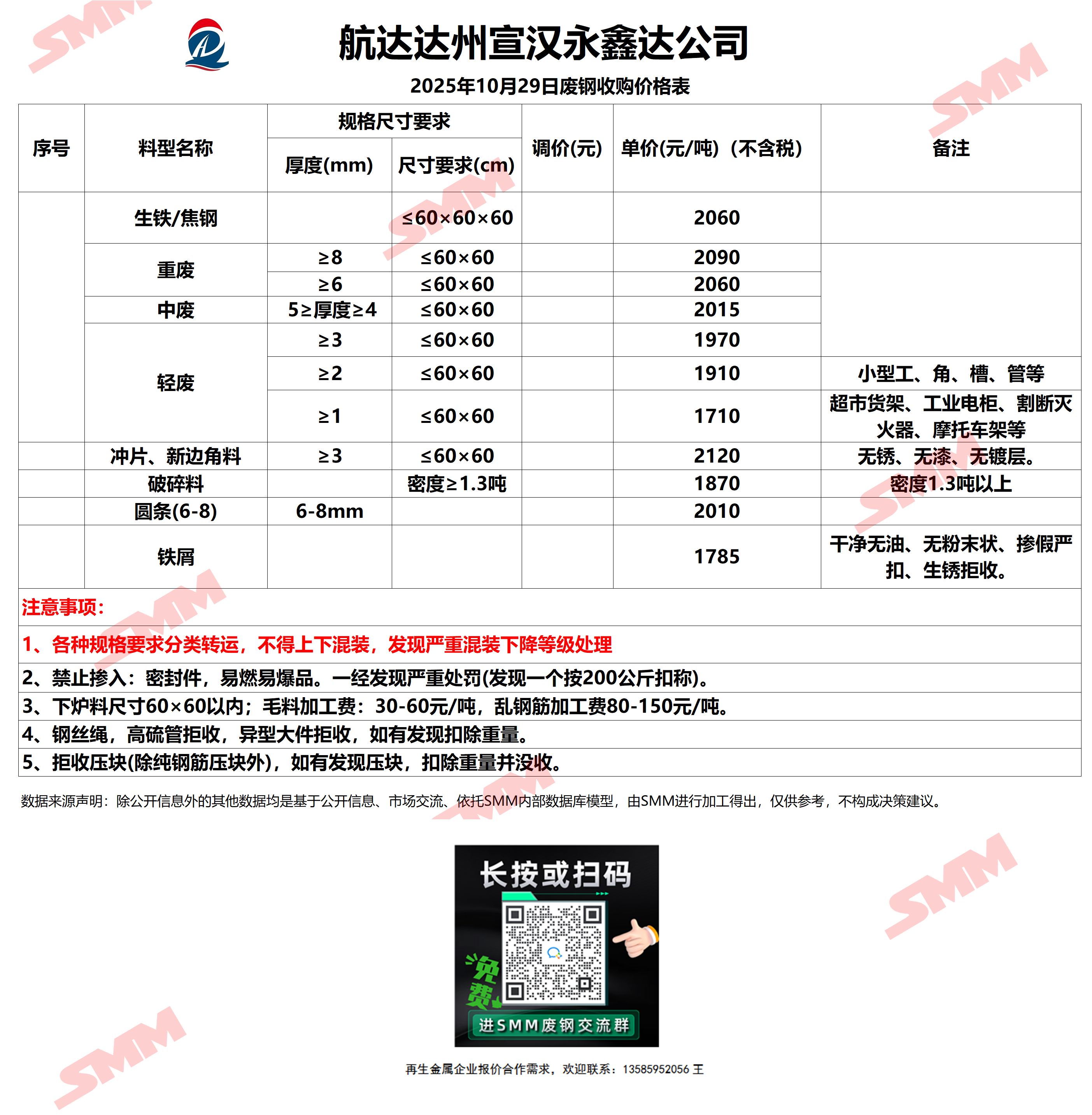10月29日达州宣汉永鑫达 废钢收购报价
