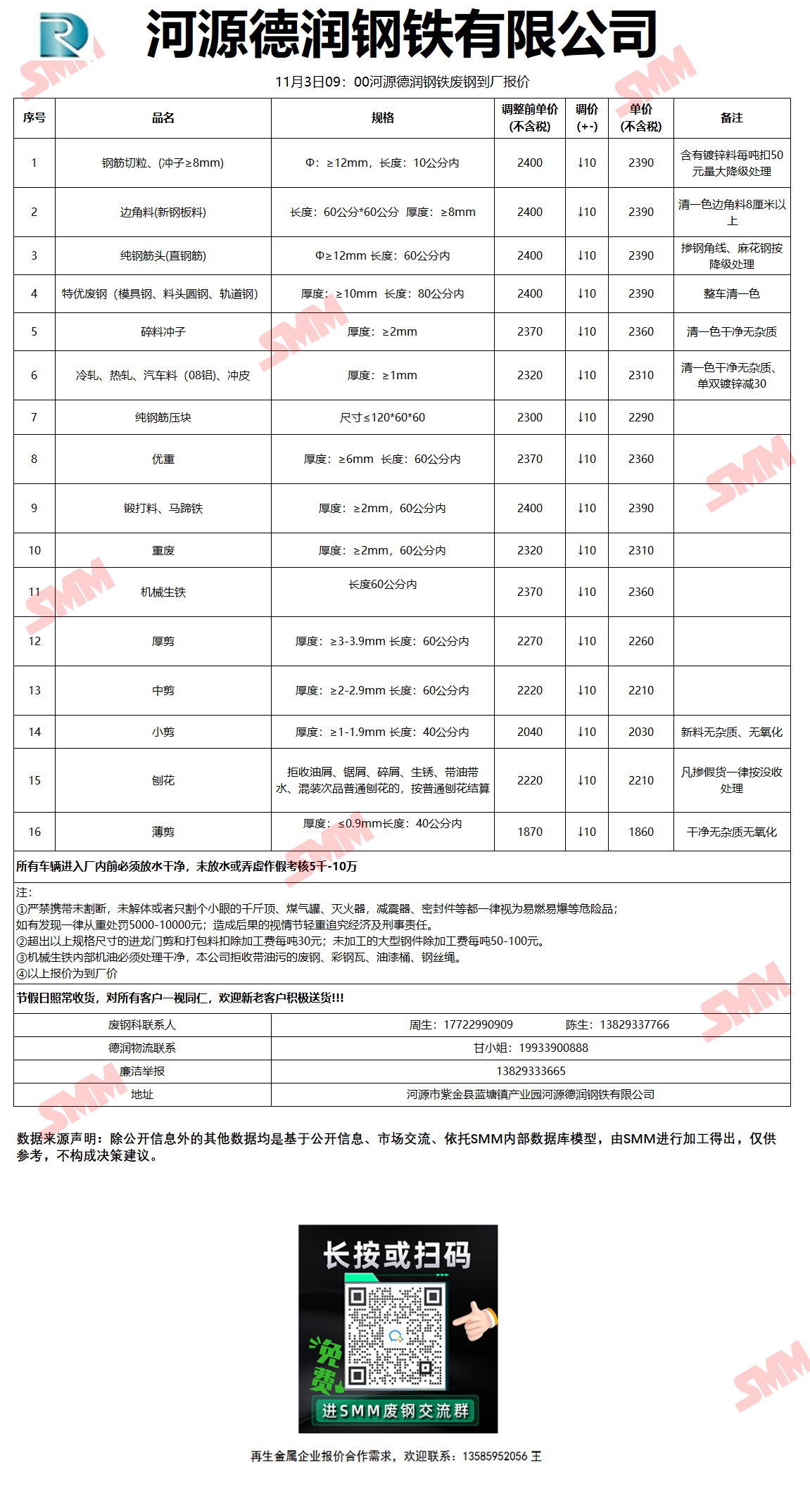 今日河源德润 废钢收购报价已更新,有货的朋友欢迎联系我们!