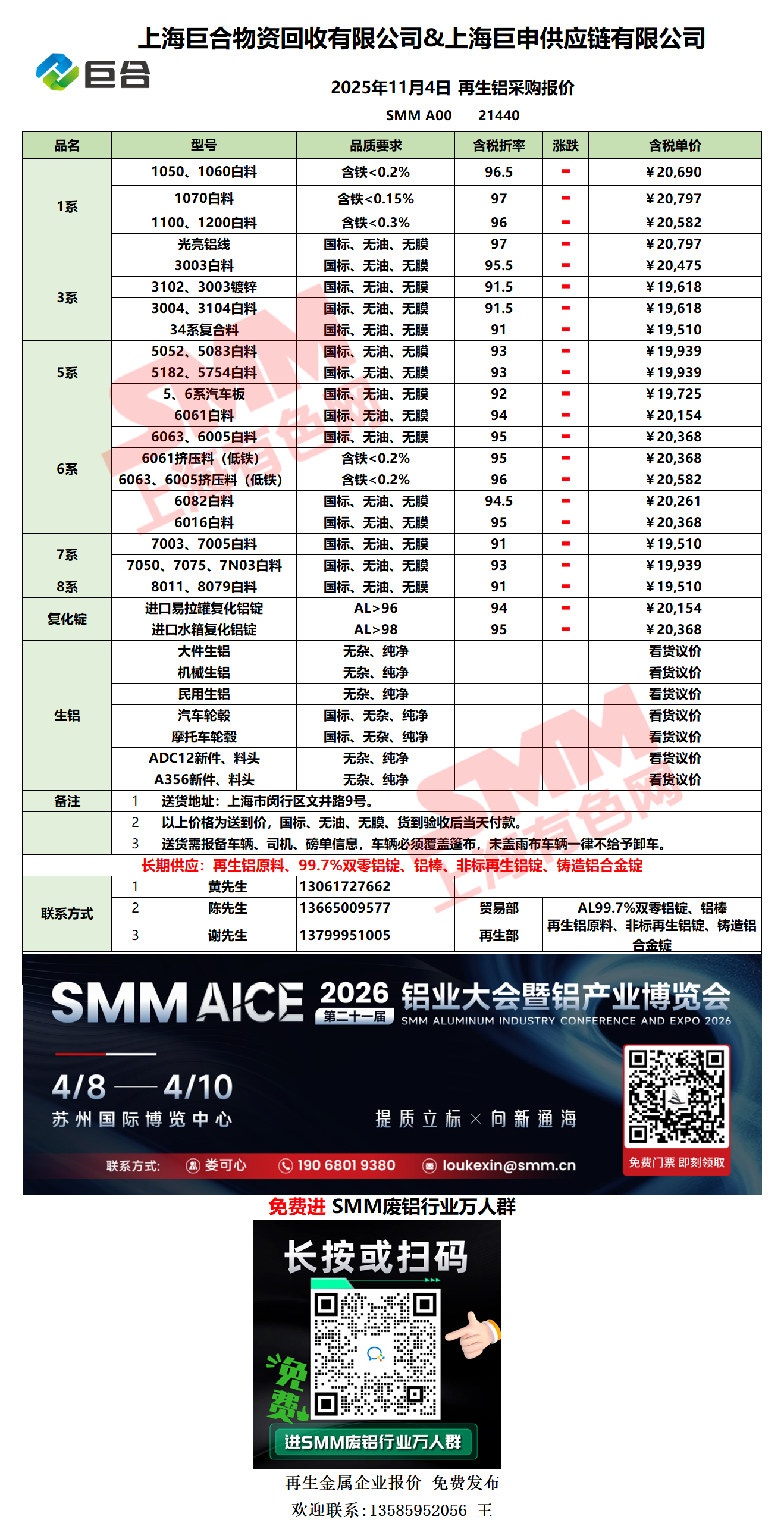 今日上海巨合 废铝采购报价已更新,有货的朋友欢迎联系我们!
