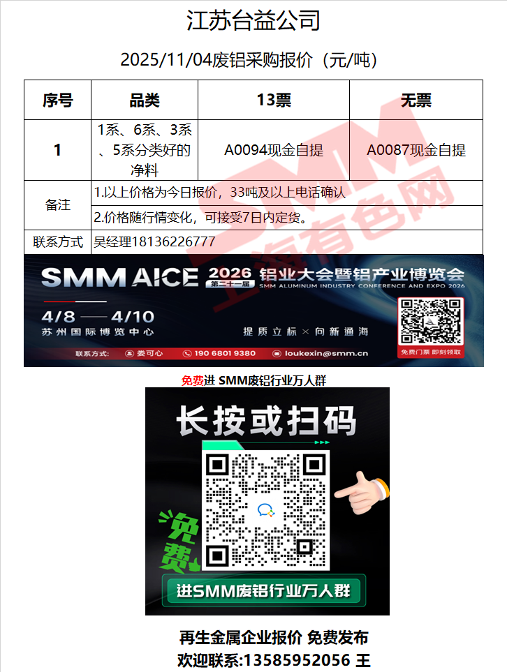 今日江苏台益 废铝采购报价已更新,有货的朋友欢迎联系我们!