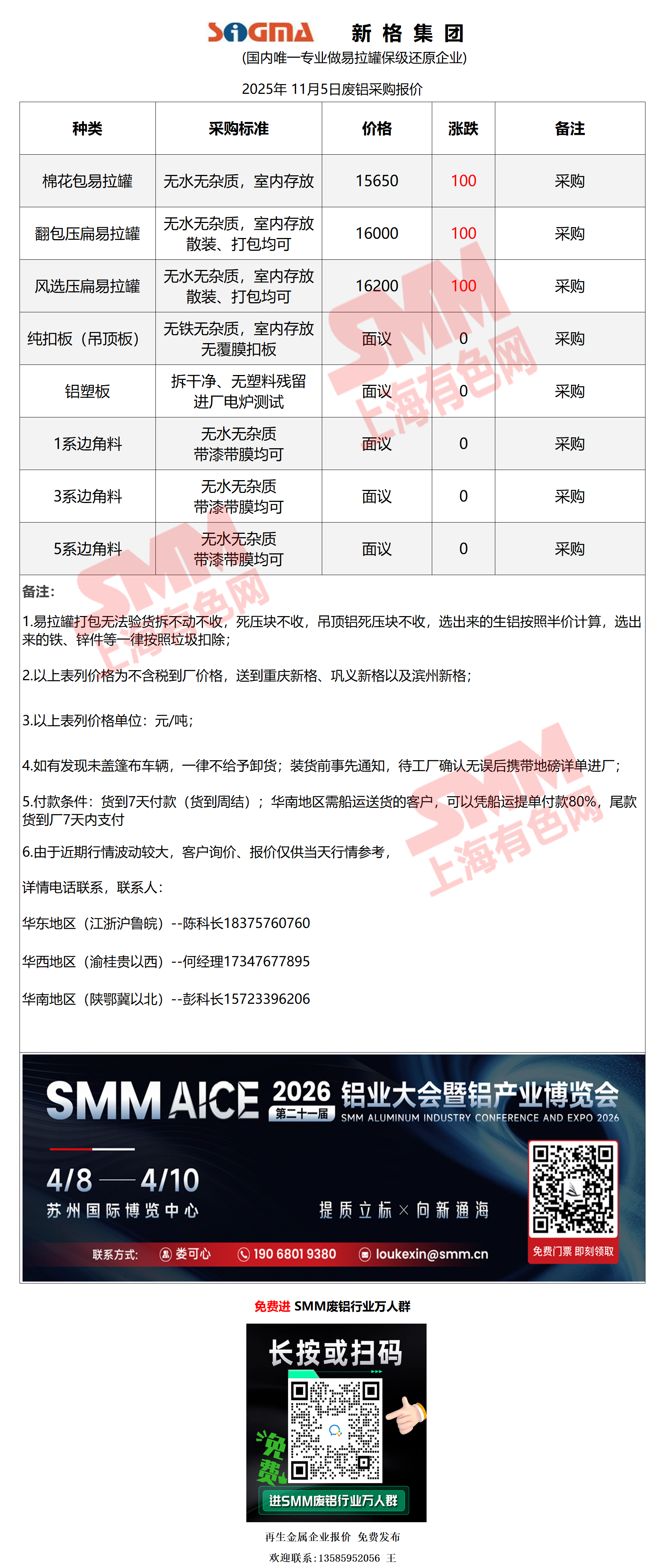 11月5日新格集团 废铝采购报价