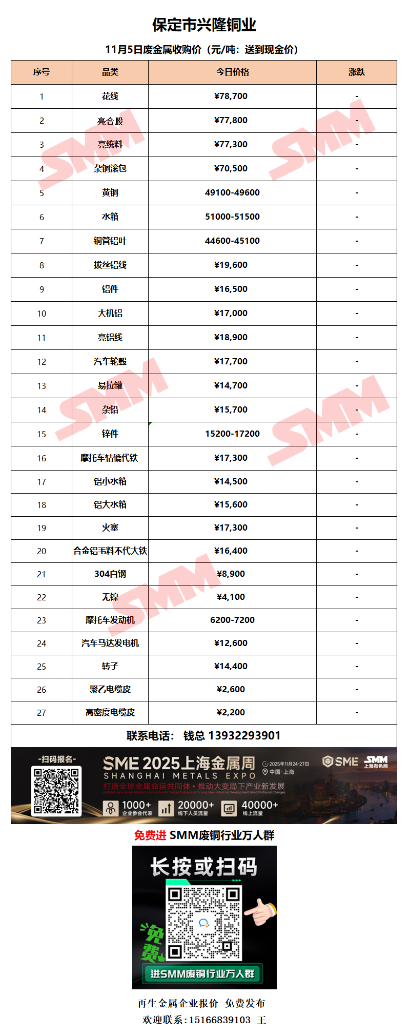 今日保定兴隆铜业 废铜采购报价已更新,有货的朋友欢迎联系我们!