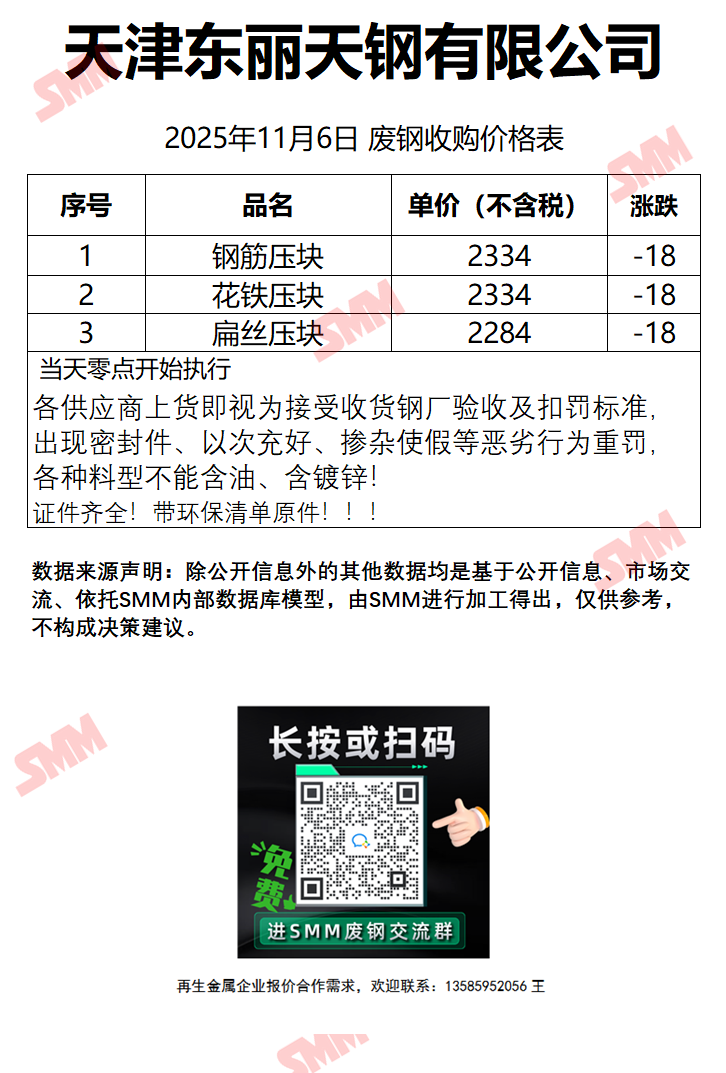 11月6日天津东丽天钢 废钢收购报价
