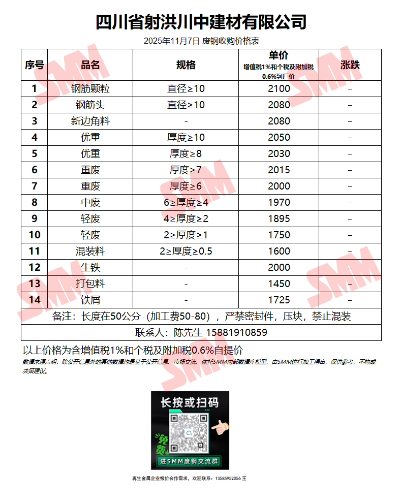 11月7日四川射洪川中 废钢收购报价