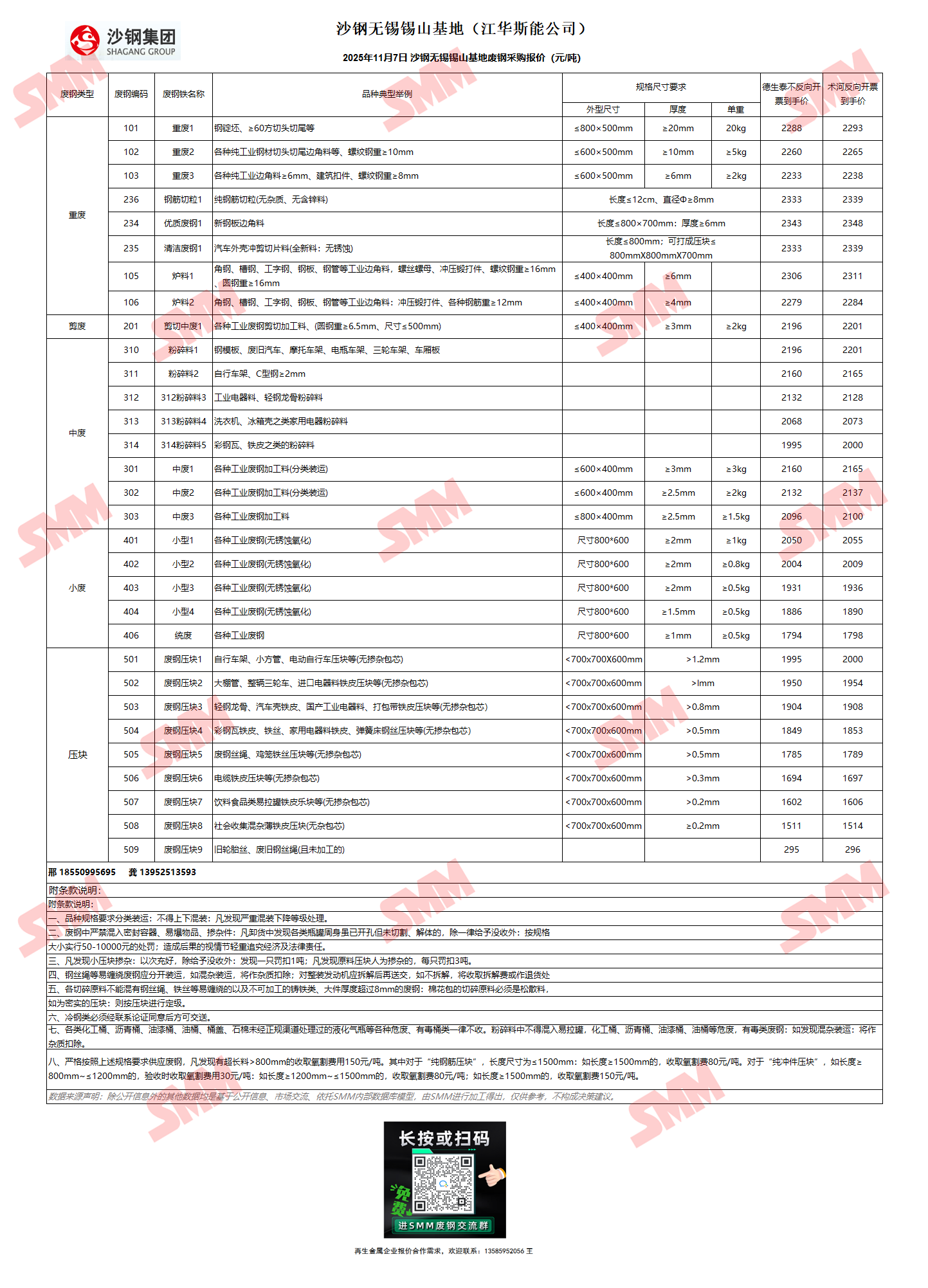 今日沙钢锡山基地 废钢采购报价已更新,有货的朋友欢迎联系我们!