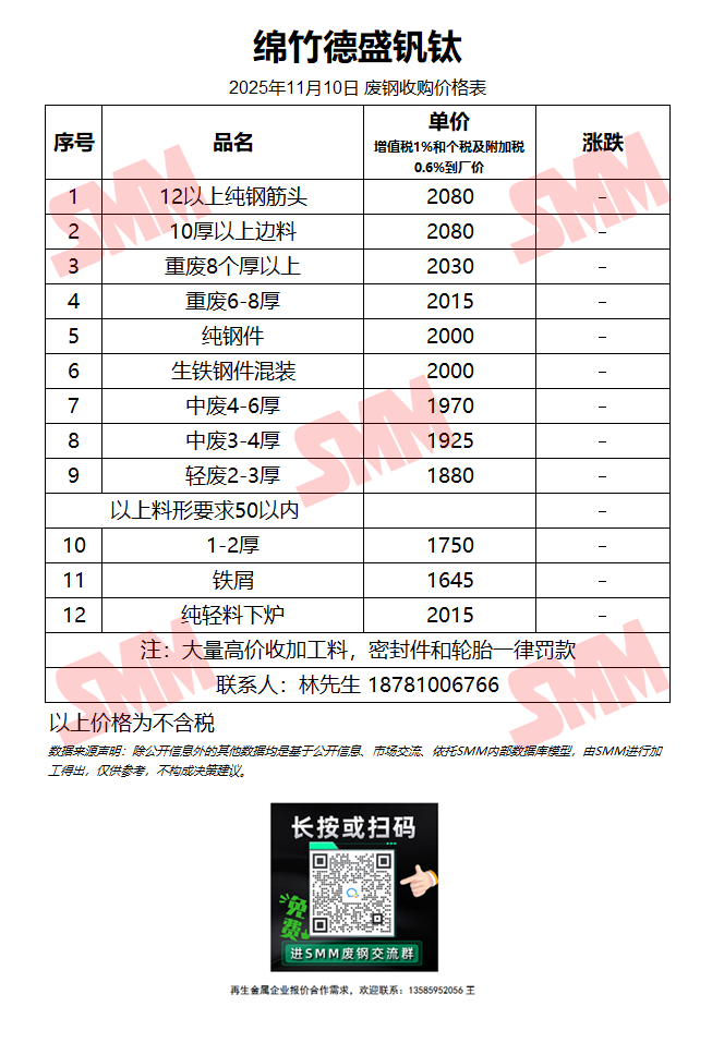 今日绵竹德盛钒钛 废钢收购报价已更新,有货的朋友欢迎联系我们!