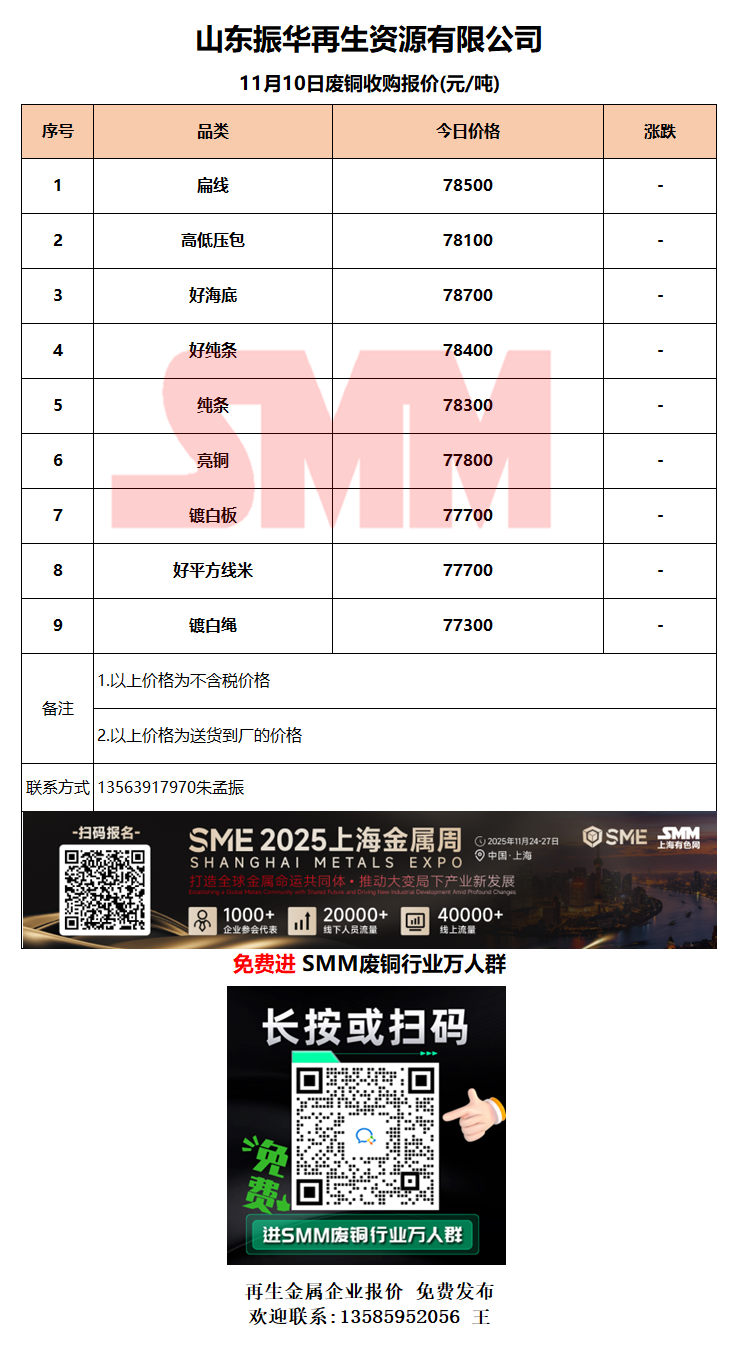 今日山东振华 废铜采购报价已更新,有货的朋友欢迎联系我们!