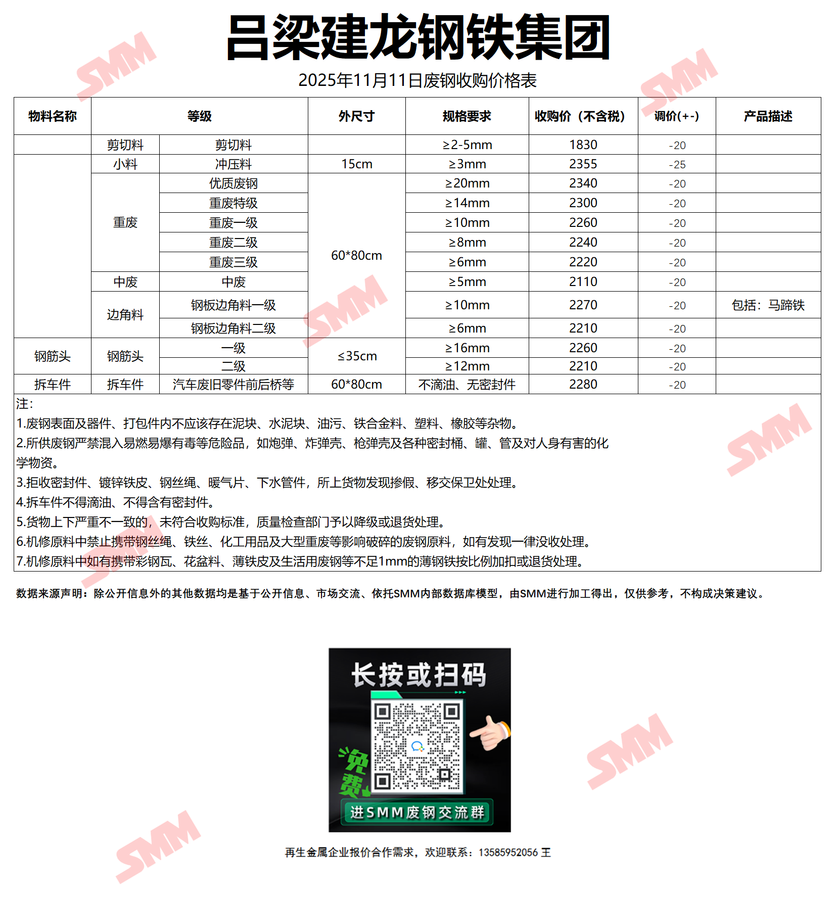 今日吕梁建龙钢铁 废钢收购报价已更新,有货的朋友欢迎联系我们!