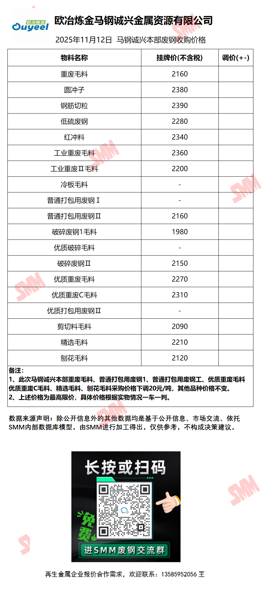 今日马钢诚兴 废钢收购报价已更新,有货的朋友欢迎联系我们!