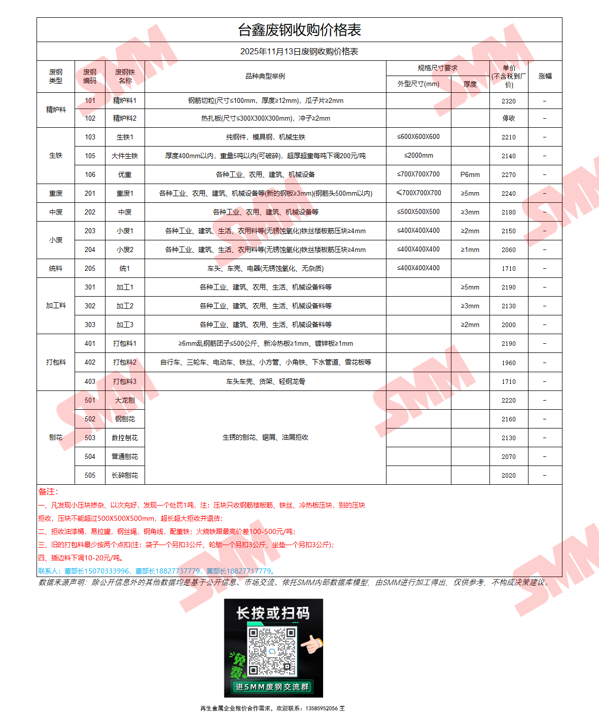 11月13日台鑫 废钢收购报价