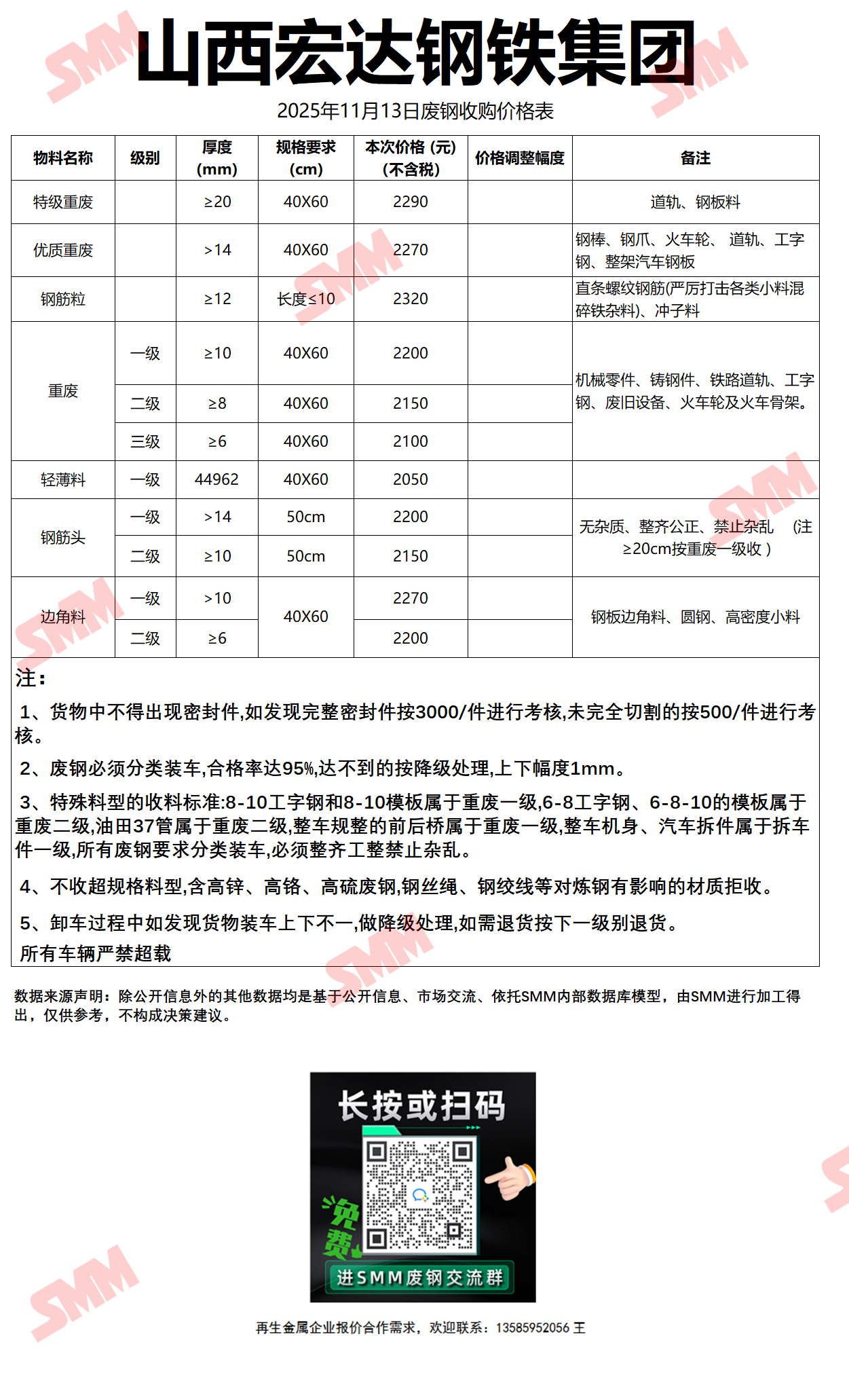 今日山西宏达钢铁 废钢收购报价已更新,有货的朋友欢迎联系我们!