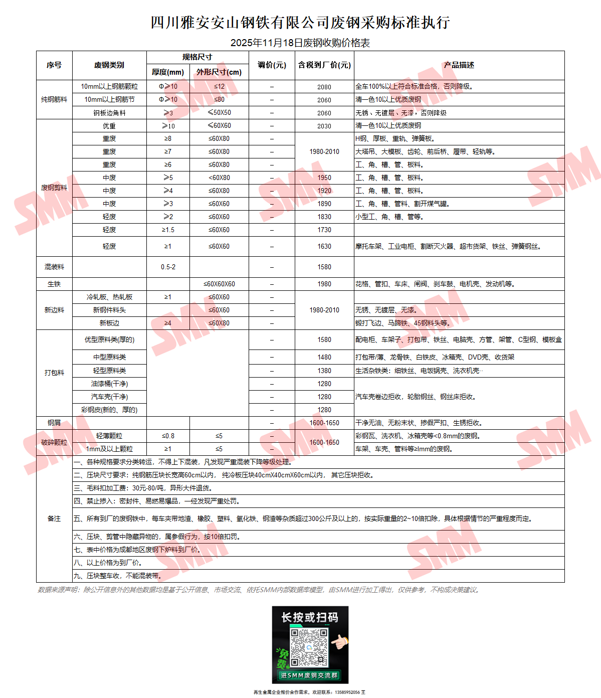 11月18日雅安安山钢铁 废钢收购报价