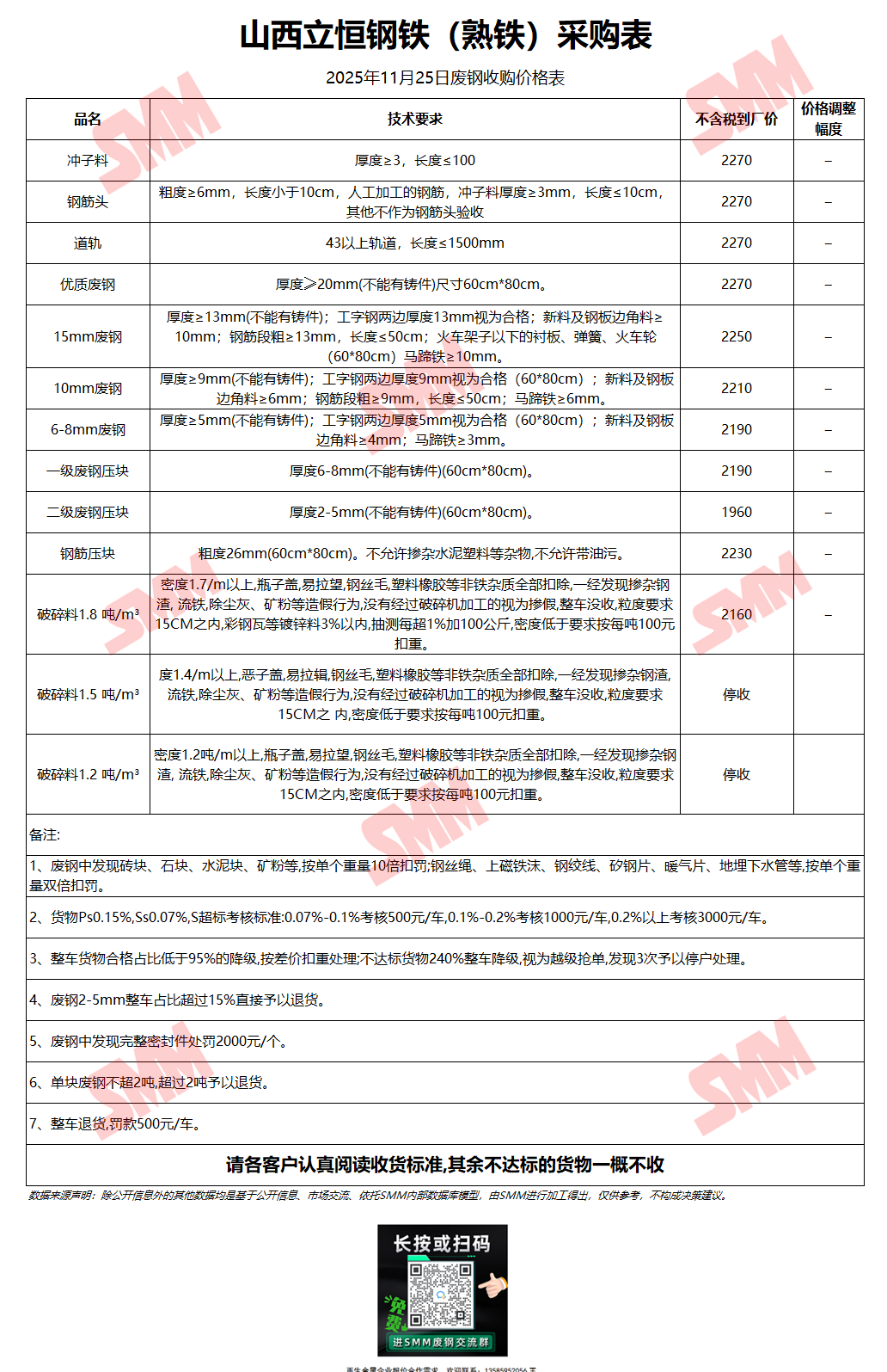 11月25日山西立恒钢铁 废钢收购报价