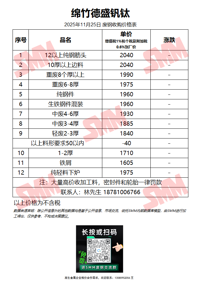 11月25日绵竹德盛钒钛 废钢收购报价