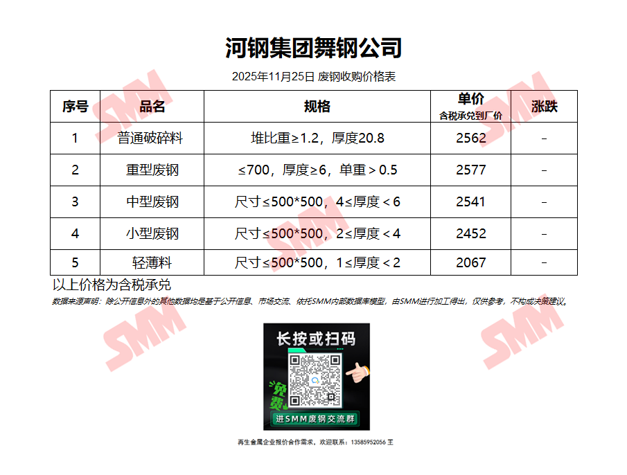 11月25日河钢集团舞钢公司 废钢收购报价