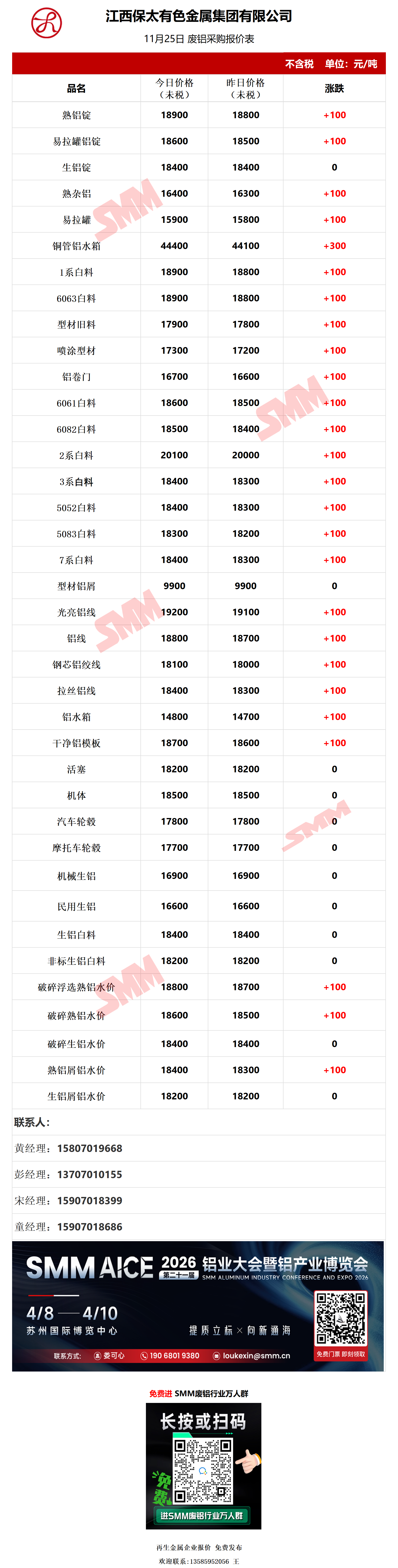 11月25日江西保太 废铝采购报价