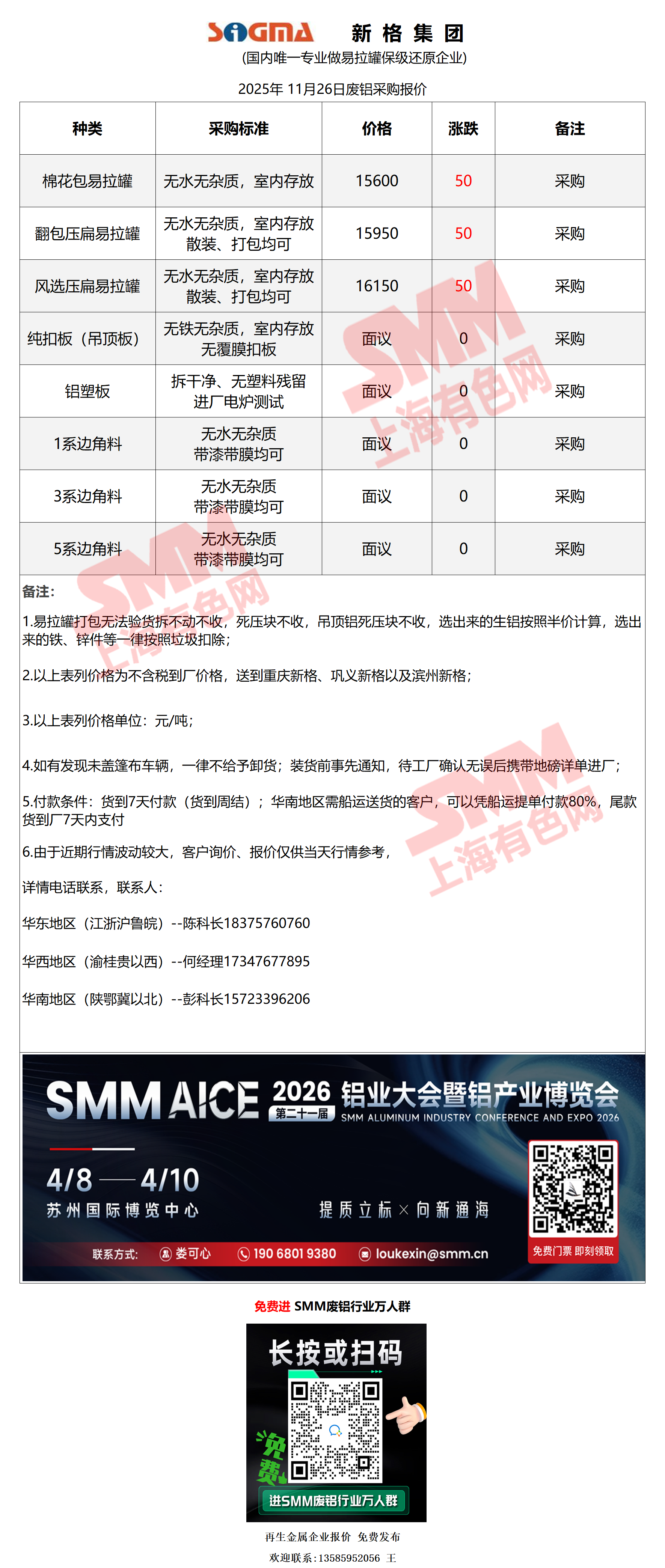 11月26日新格集团 废铝采购报价