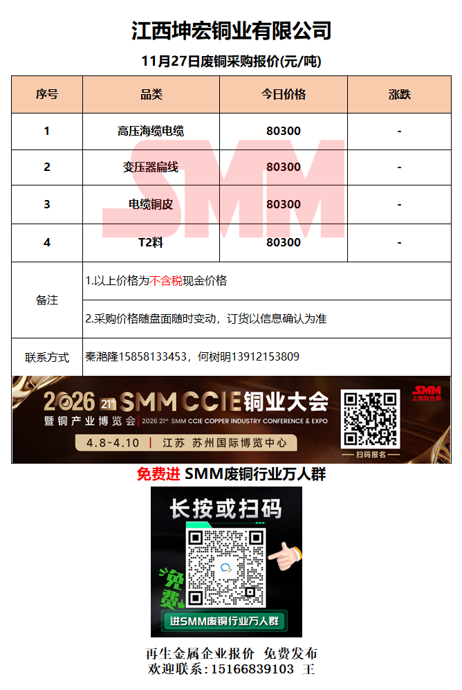 今日江西坤宏 废铜采购报价已更新,有货的朋友欢迎联系我们!