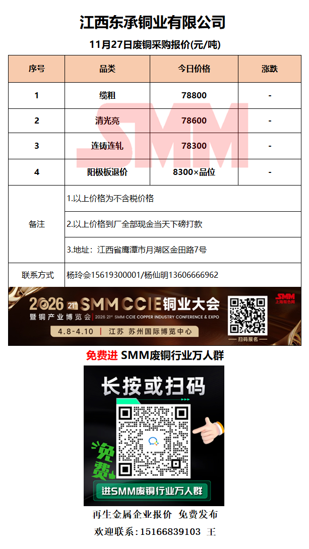 11月27日江西东承 废铜采购报价