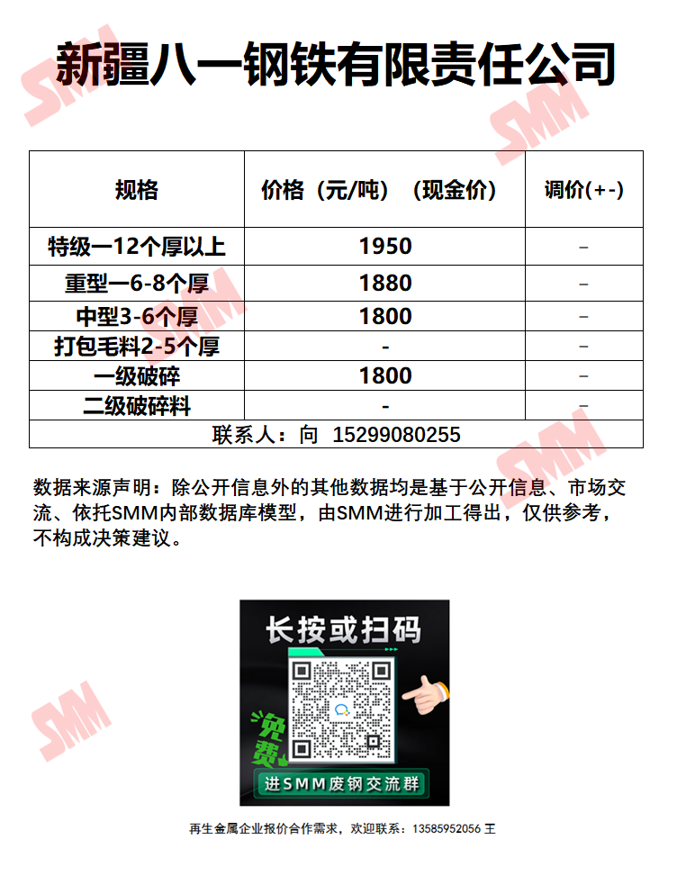 今日新疆八一钢铁 废钢收购报价已更新,有货的朋友欢迎联系我们!