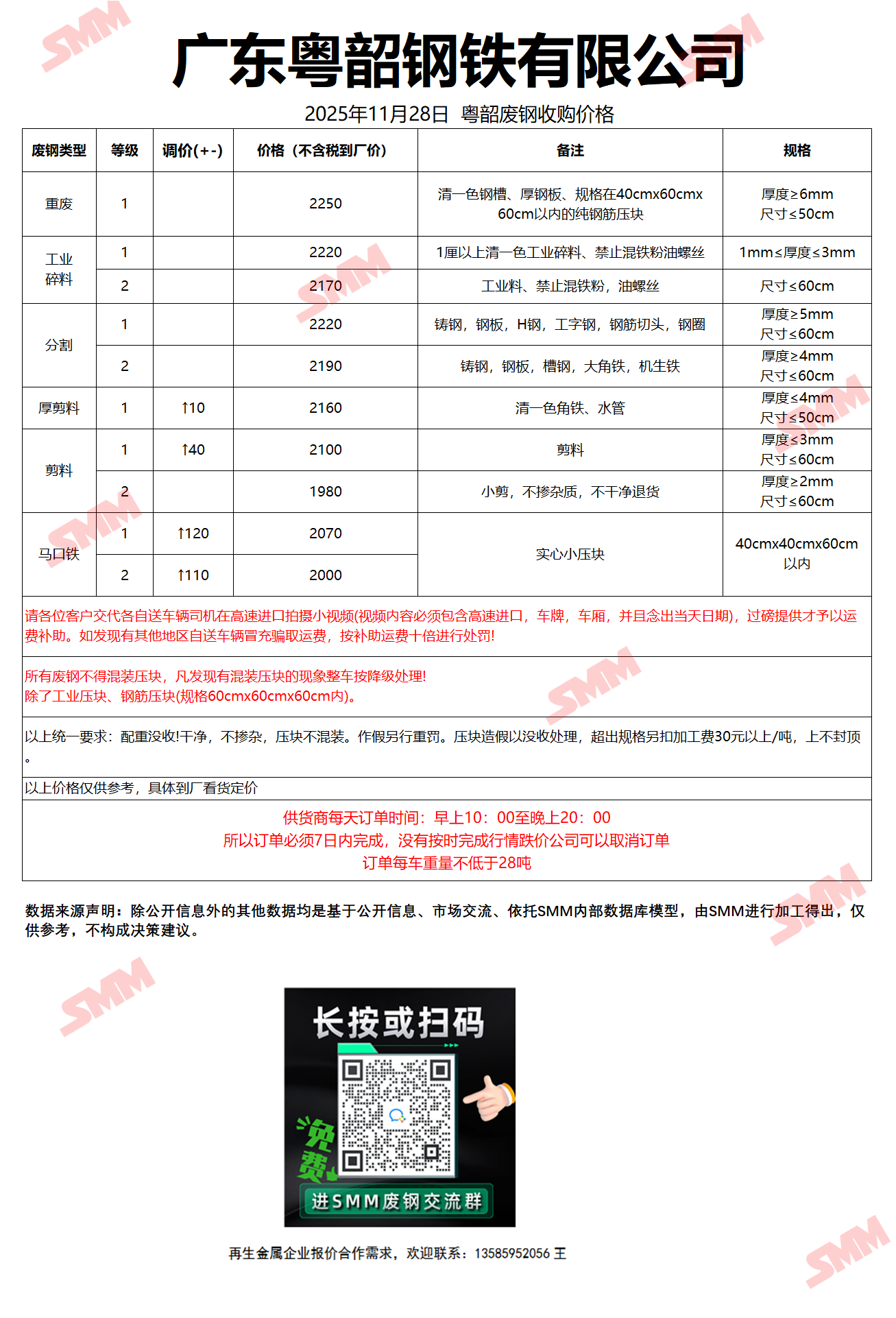 今日广东粤韶 废钢收购报价已更新,有货的朋友欢迎联系我们!