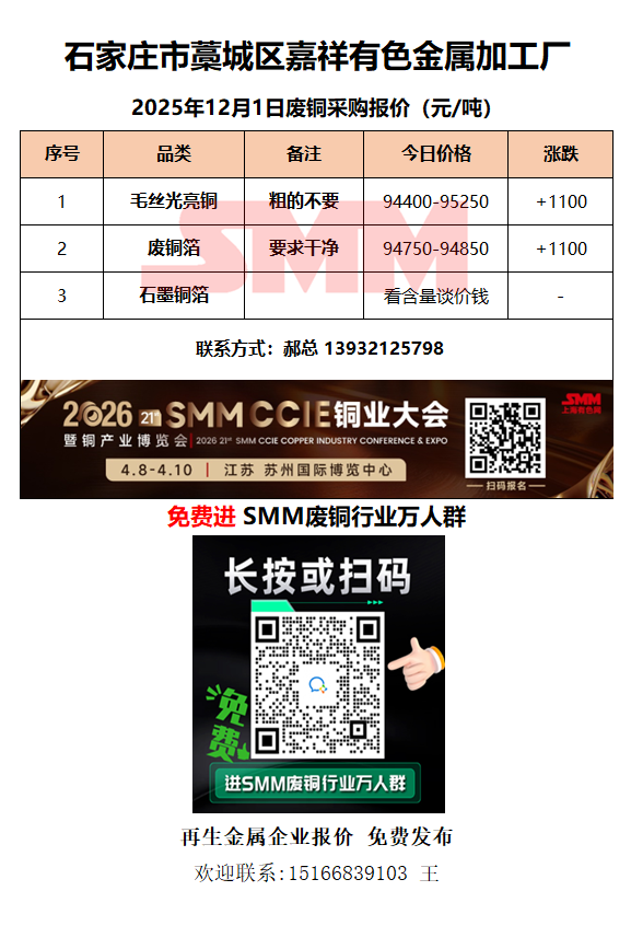 今日嘉祥有色金属 废铜采购报价已更新,有货的朋友欢迎联系我们!