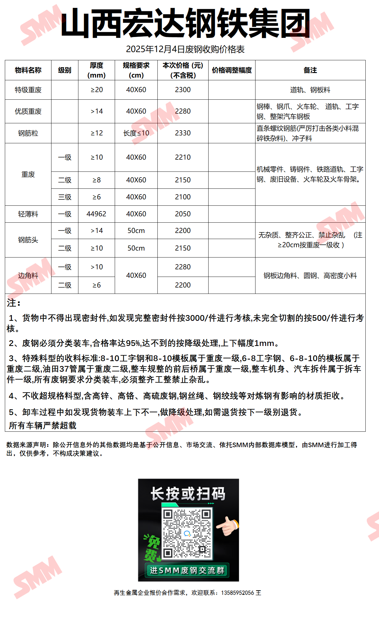 12月4日山西宏达钢铁 废钢收购报价