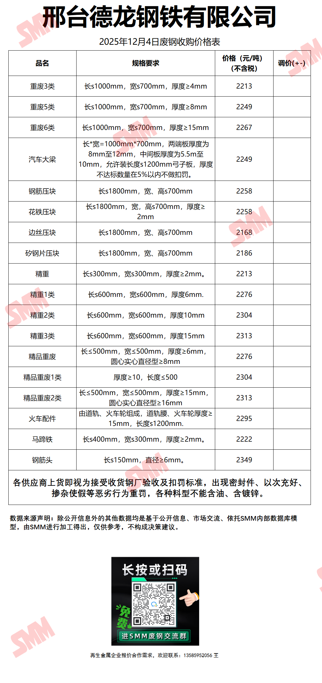 12月4日邢台德龙钢铁 废钢收购报价