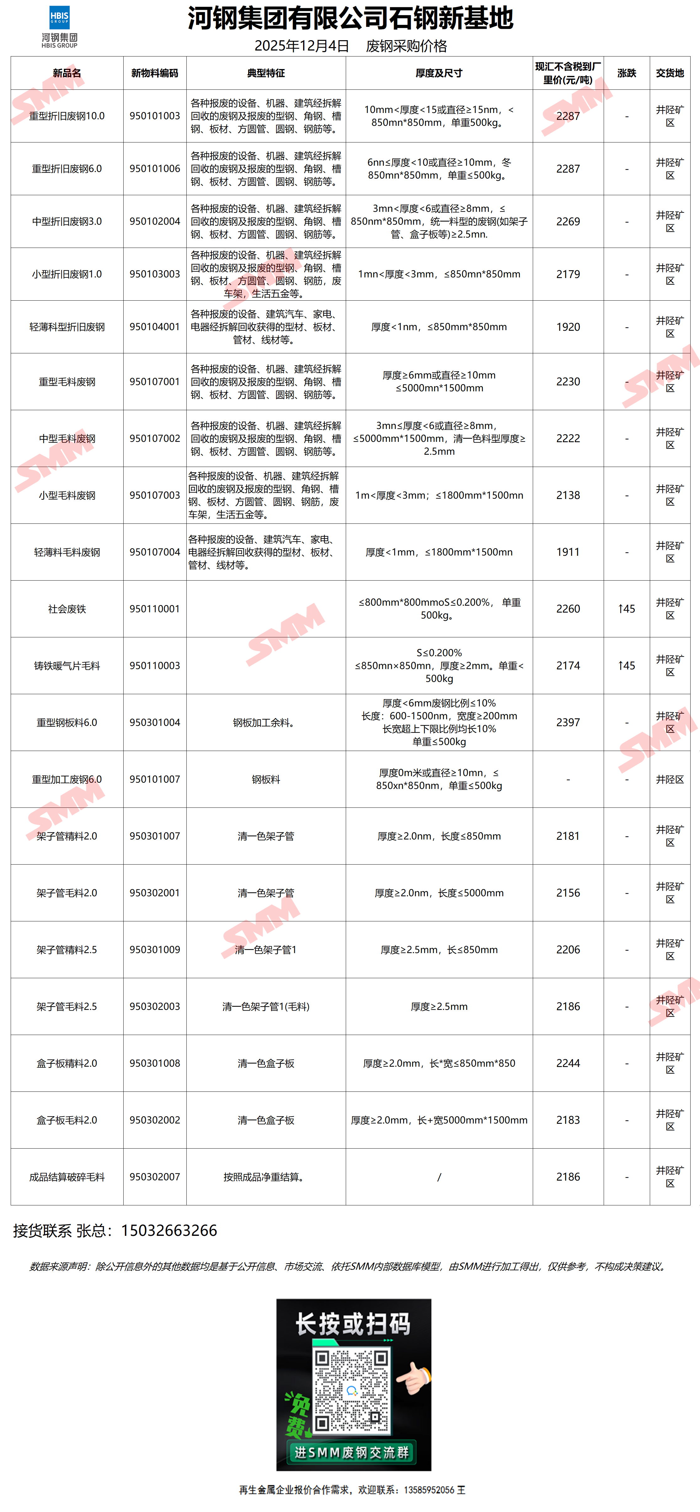 今日河钢石钢新基地 废钢采购报价已更新,有货的朋友欢迎联系我们!