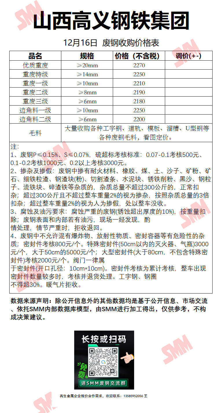 12月16日山西高义 废钢收购报价