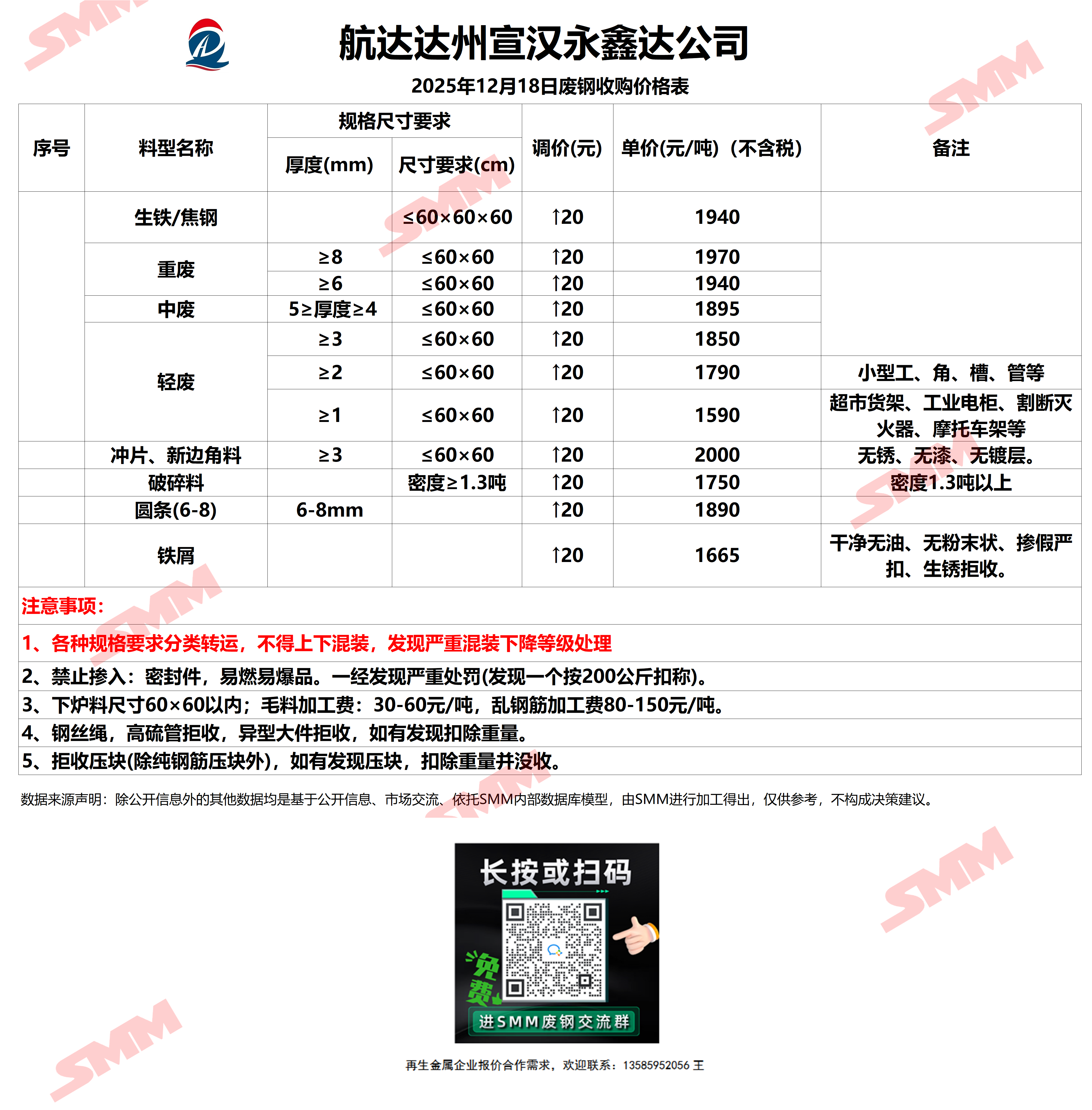 12月18日达州宣汉永鑫达 废钢收购报价