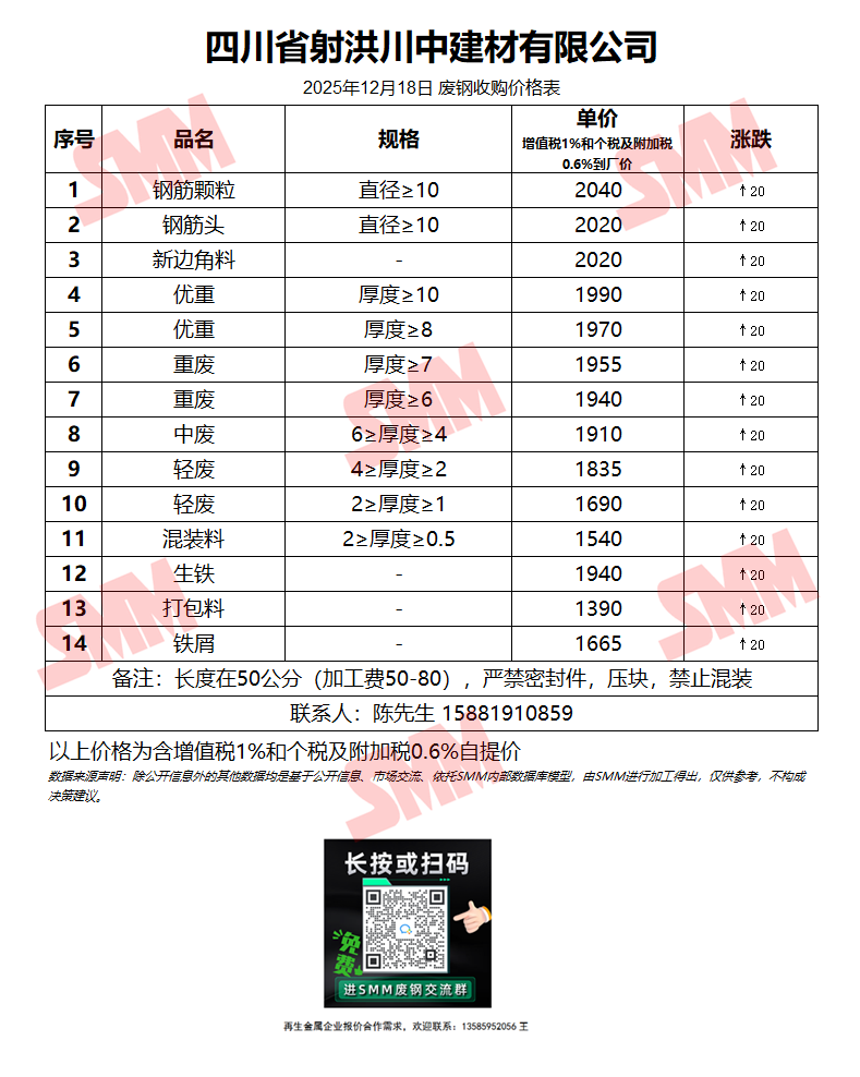 12月18日鑫泉钢铁(原绵竹金泉钢铁) 废钢采购报价