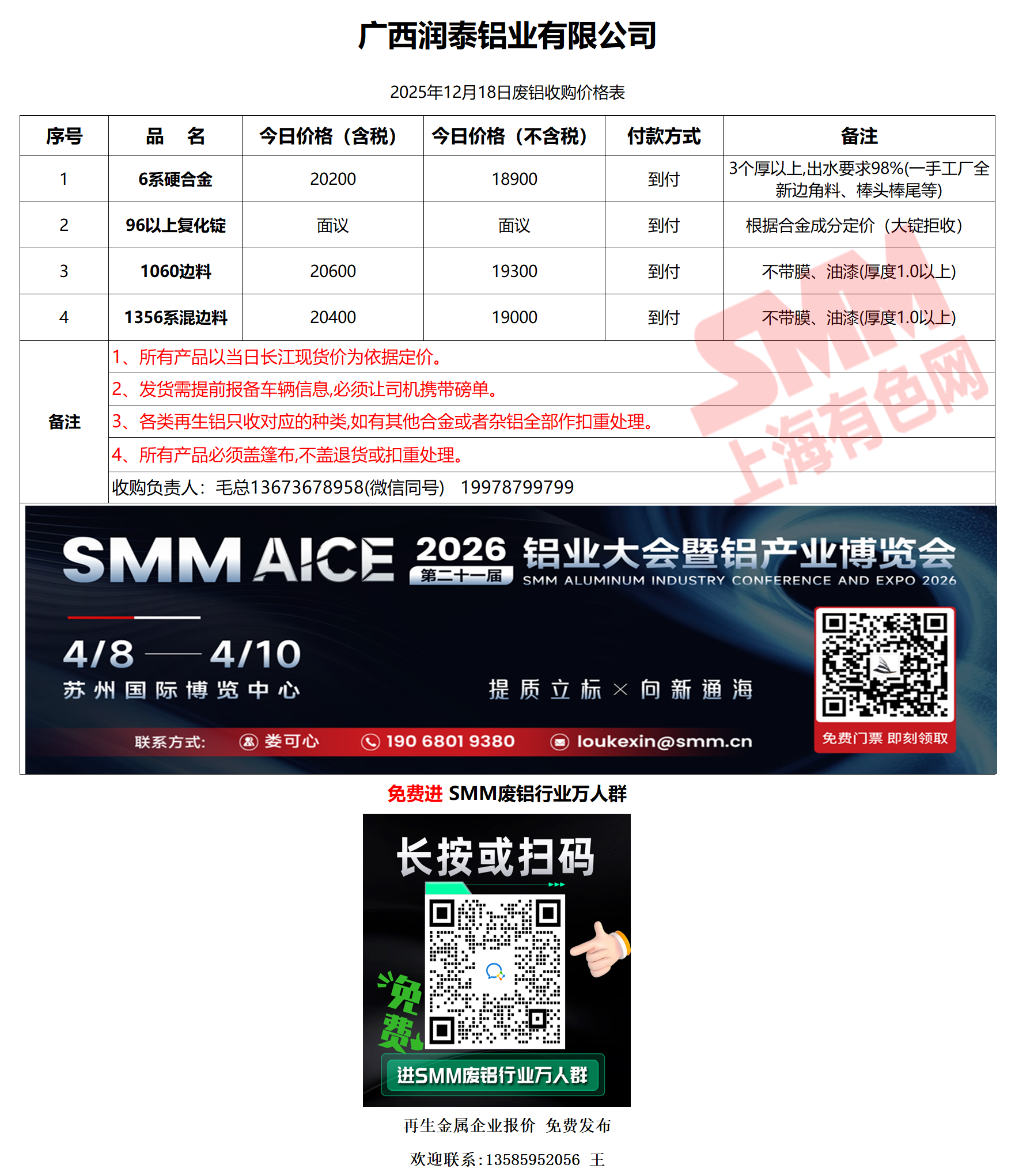 今日广西润泰铝业 废铝采购报价已更新,有货的朋友欢迎联系我们!