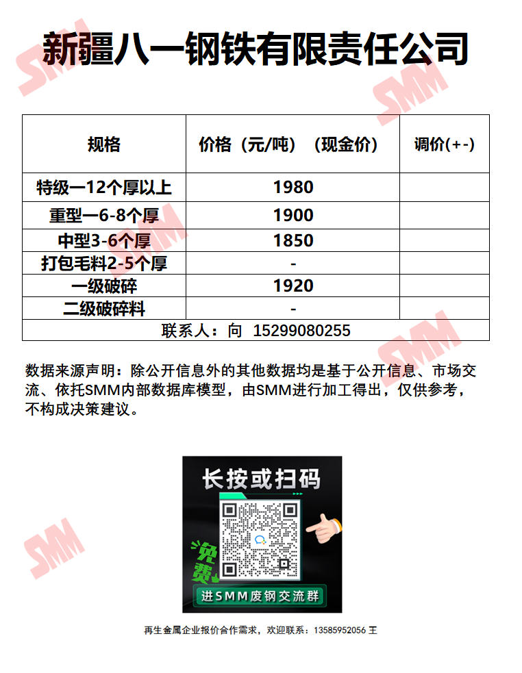 今日新疆八一钢铁 废钢收购报价已更新,有货的朋友欢迎联系我们!
