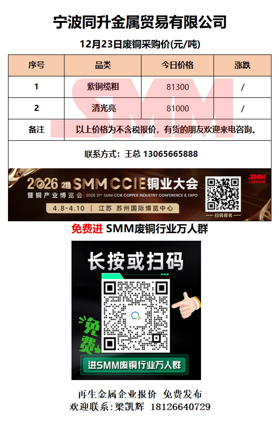 12月23日高诺(衡阳)铜业 废铜采购报价