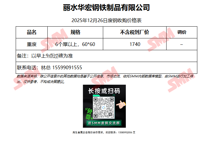 今日丽水华宏 废钢收购报价已更新,有货的朋友欢迎联系我们!