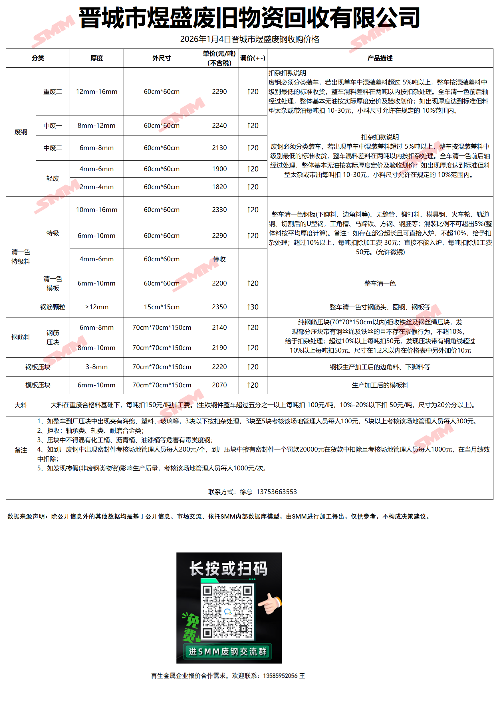 今日晋城市煜盛 废钢收购报价已更新,有货的朋友欢迎联系我们!