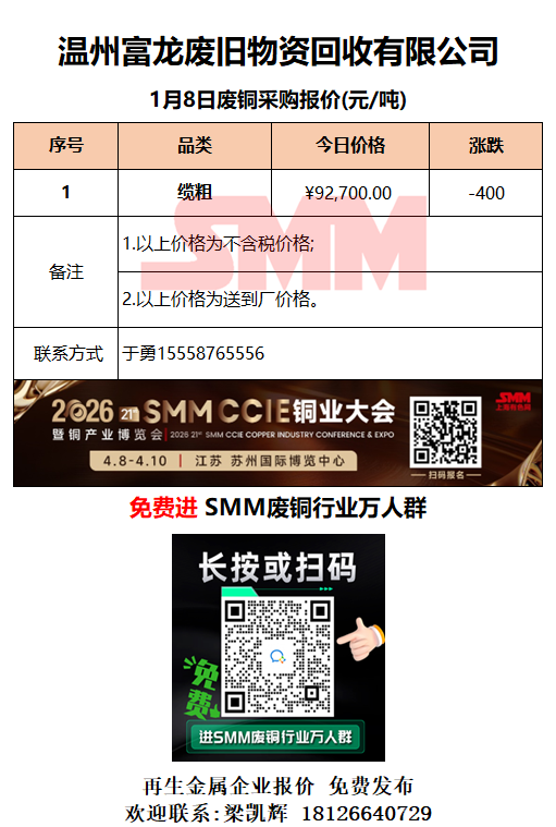 今日温州富龙废旧 废铜采购报价已更新,有货的朋友欢迎联系我们!