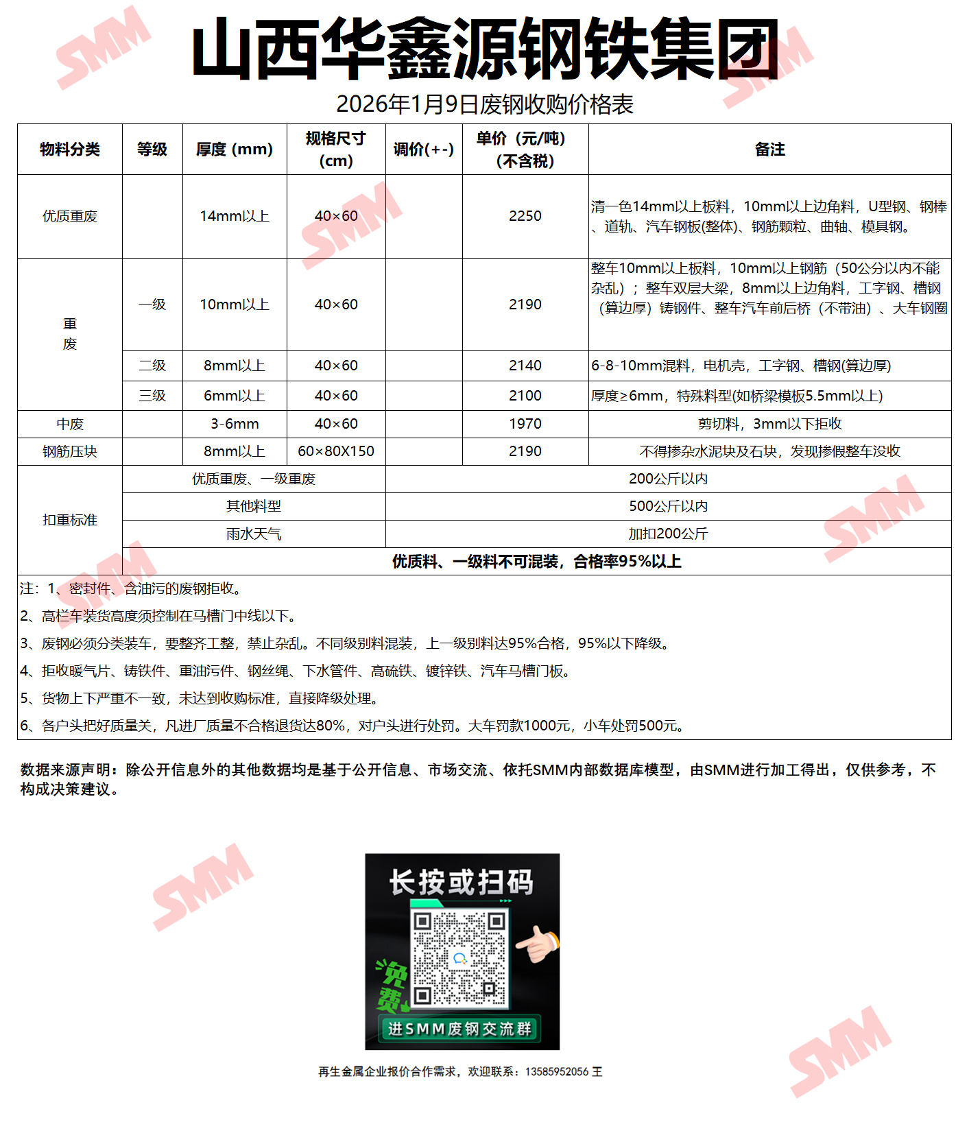 今日山西华鑫源 废钢收购报价已更新,有货的朋友欢迎联系我们!