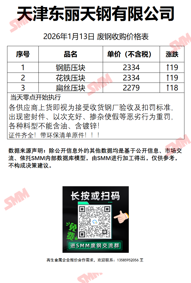 1月13日河北纵横集团丰南钢铁 废钢采购报价