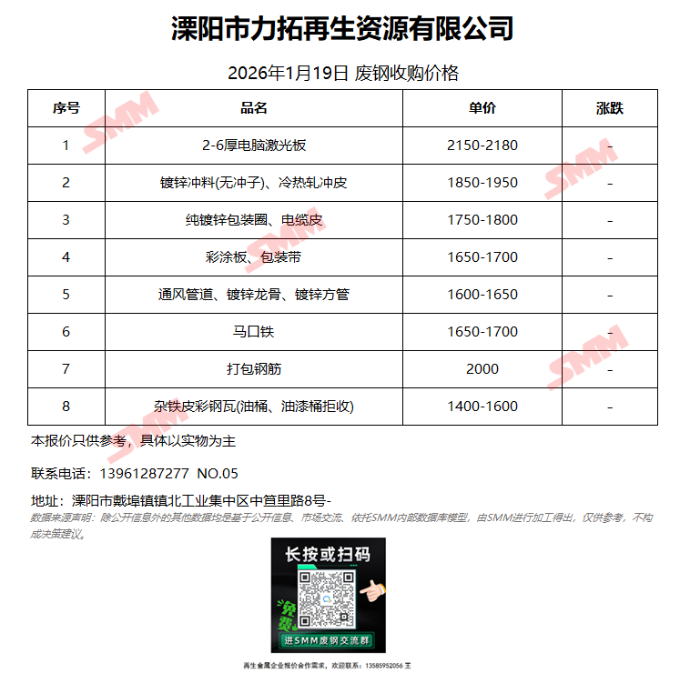 今日溧阳市力拓再生 废钢收购报价已更新,有货的朋友欢迎联系我们!