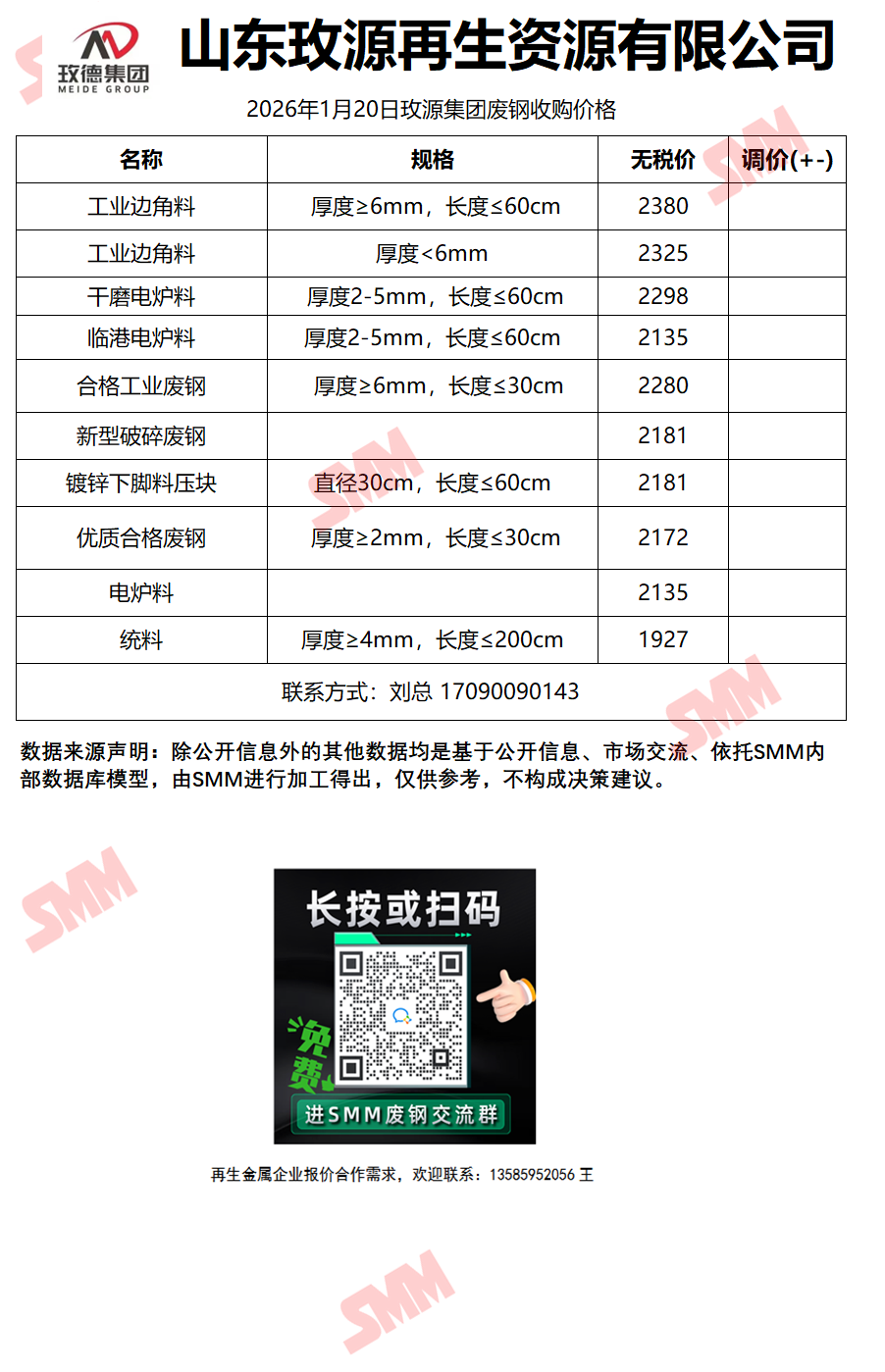 1月20日山东玫源再生 废钢收购报价