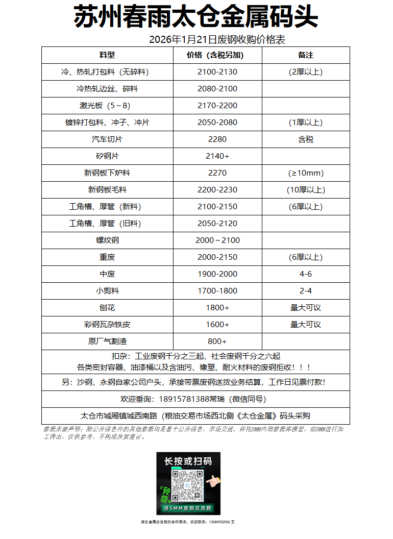 1月21日苏州春雨 废钢收购报价