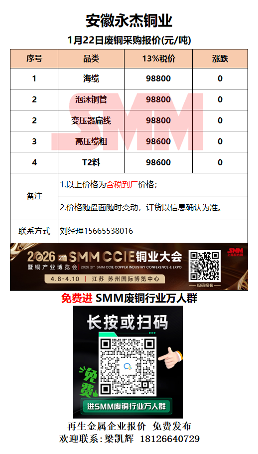 今日安徽永杰 废铜采购报价已更新,有货的朋友欢迎联系我们!