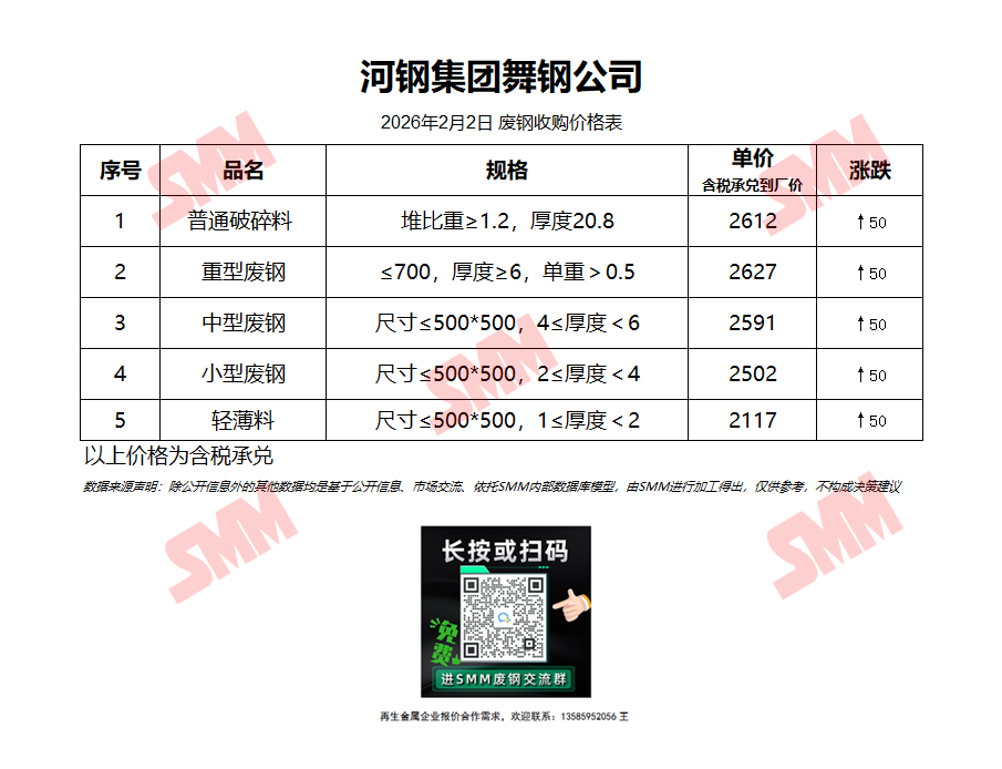 2月2日河钢集团舞钢公司 废钢收购报价
