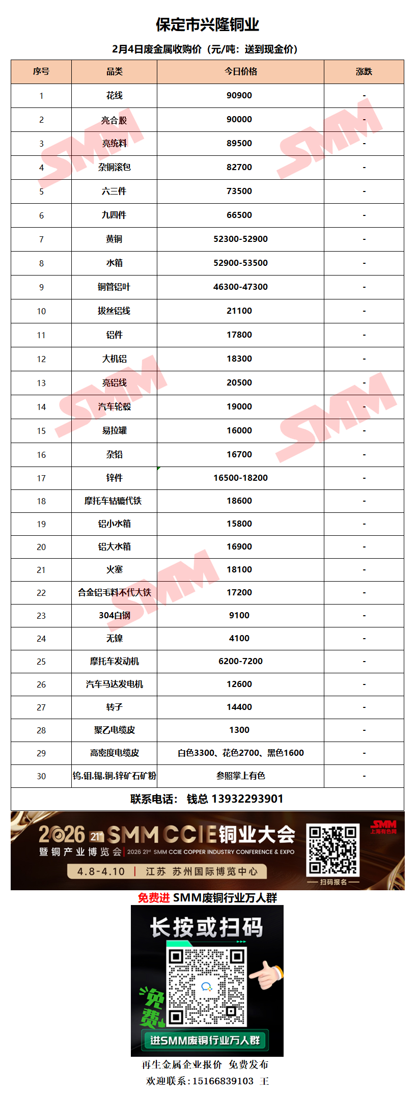 今日保定兴隆铜业 废铜采购报价已更新,有货的朋友欢迎联系我们!