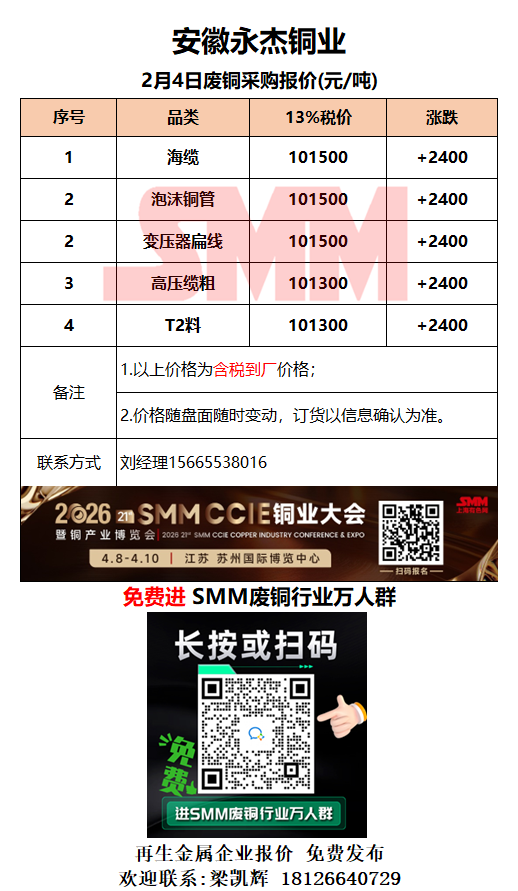 今日安徽永杰 废铜采购报价已更新,有货的朋友欢迎联系我们!