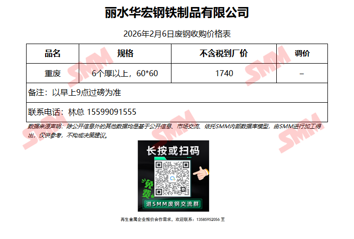今日丽水华宏 废钢收购报价已更新,有货的朋友欢迎联系我们!